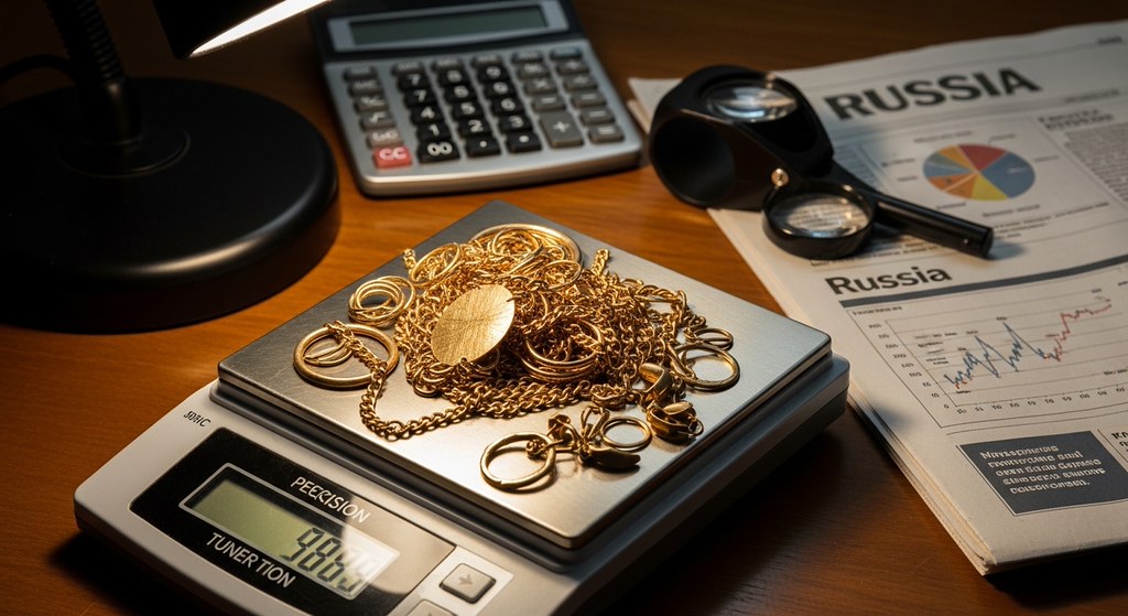 Базовая логика расчёта выкупной суммы выглядит так: вес × доля золота (проба/1000) × референтная цена чистого золота (руб./г) × (1 − комиссия/маржа) ± премия/скидка за бренд, камни, состояние. На практике эта формула дополняется региональными и операционными поправками — логистика, способ выплаты, документы.